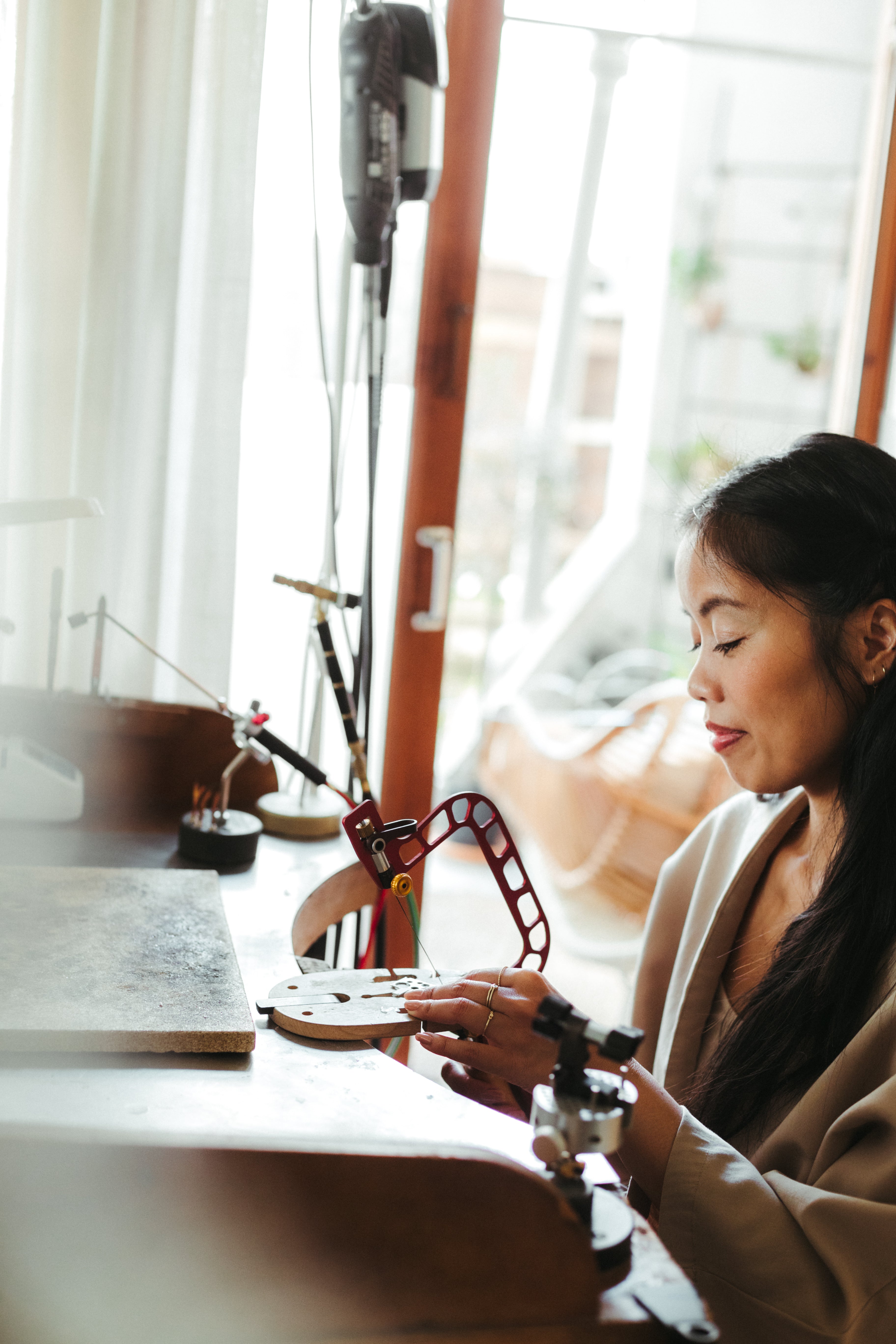 Melinawaty, ik ben een holistische selfmade goudsmid met een diepe passie voor het creëren van sieraden die meer zijn dan alleen mooie objecten. Vanuit mijn sfeervolle atelier in Den Haag ontwerp en maak ik met de hand intuïtieve en persoonlijke sieraden die verhalen vertellen en een bijzondere betekenis hebben.